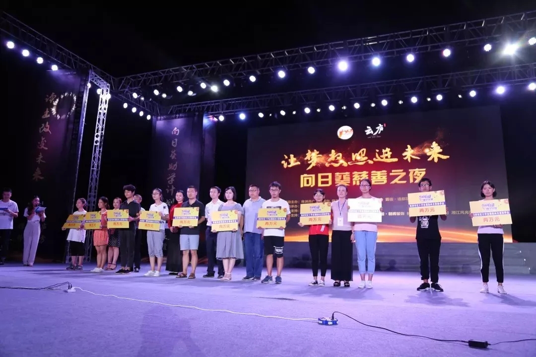 ▲向日葵助學(xué)計(jì)劃的11位學(xué)子接受愛(ài)心企業(yè)的資助