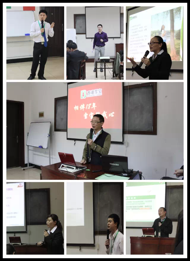 培訓室里歡笑聲、鼓掌聲、口號聲此起彼伏。兩天的課程,總經(jīng)理、副總、培訓講師宋老師及其他一些講師風趣幽默、旁征博引,深入淺出地闡述了包括“雪寶發(fā)展歷程”、“板材知識”、“專賣店陳列”、“廣告投放”、“客戶維護”、“客戶拓展”、“專賣店形象”等內(nèi)容,并不時與臺下積極互動,現(xiàn)場氣氛既緊張又活躍。