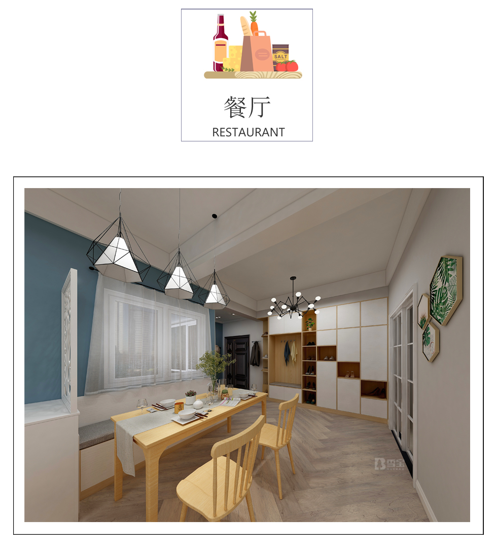 功能性:餐廳空間小,過道狹長。整體空間方正,做到了干濕分離、動靜分離,方便后期生活。