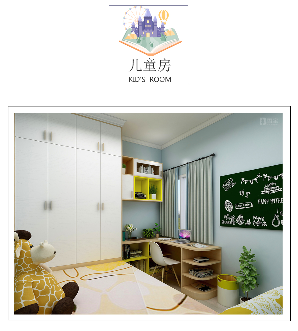 次臥作為父母房使用,老年人經(jīng)歷了幾十年的人生沉淀,性格和喜好往往更偏于成熟穩(wěn)重的格調(diào),所以在顏色搭配上面,選擇稍微偏深色一點!