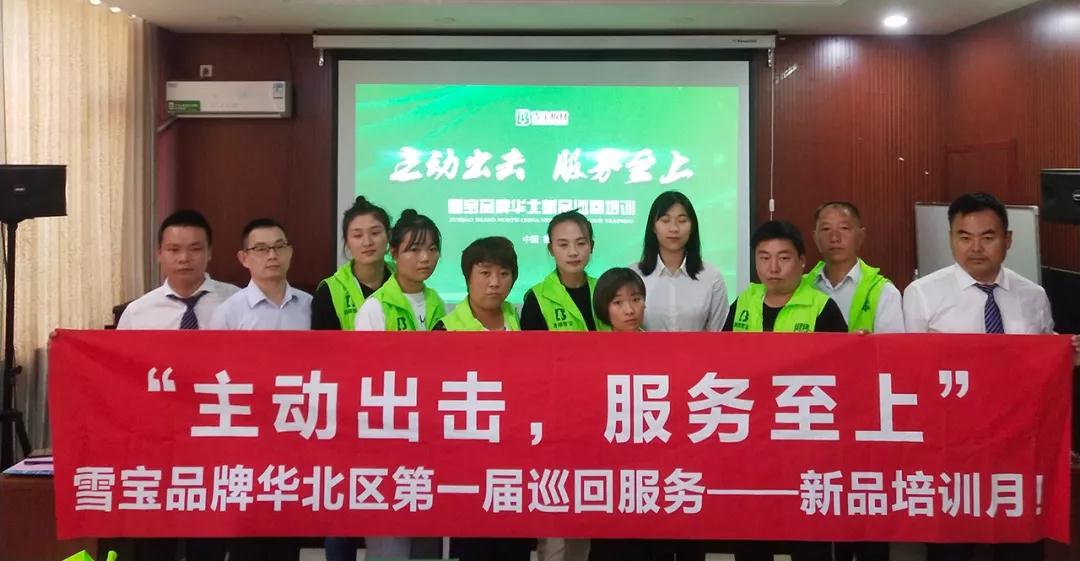 2019年9月8日、9月10日,“主動出擊 服務(wù)至上”雪寶品牌華北區(qū)第一屆巡回服務(wù)——新品培訓(xùn)月活動來到山東德州和山東安丘,雪寶國際集團華北營銷中心聯(lián)合雪寶國際集團培訓(xùn)策劃部攜手當(dāng)?shù)匮⿲毱放茖Yu店開展新品培訓(xùn),深入終端為雪寶家人門授業(yè)解惑,講解品牌核心優(yōu)勢并學(xué)以致用,真正運用到終端運營及品牌市場拓展中去。
