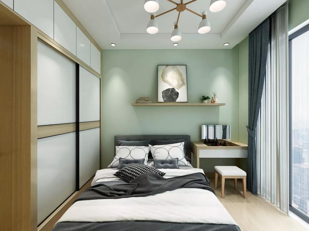 采光優(yōu)良的次臥,墻面簡單的線條,干凈的色調(diào)拼接,讓人舒適又放松,搭配可愛的羊鹿角型椅子,讓整個房間帶有一點童真。頂墻的移門柜,足夠的收納空間讓你雙十一怎么買也足夠收納。