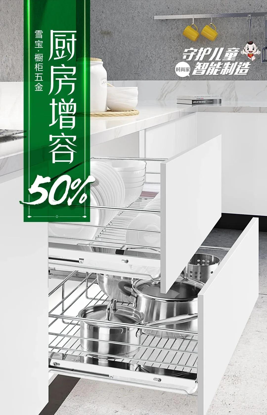 廚房的使用率算是非常頻繁的,許多有廚房裝修遺憾的業(yè)主,五金件沒(méi)選好是一部分原因,另外就是使用過(guò)程中收納糟心,大大降低了廚房的使用壽命。雪寶五金本次最新推出的幾款櫥柜五金產(chǎn)品,就是帶著走心的設(shè)計(jì)需求,為每一位精致生活的您帶來(lái)廚房增容神器,輕輕松松搞定廚房收納,讓廚房空間增容50%。