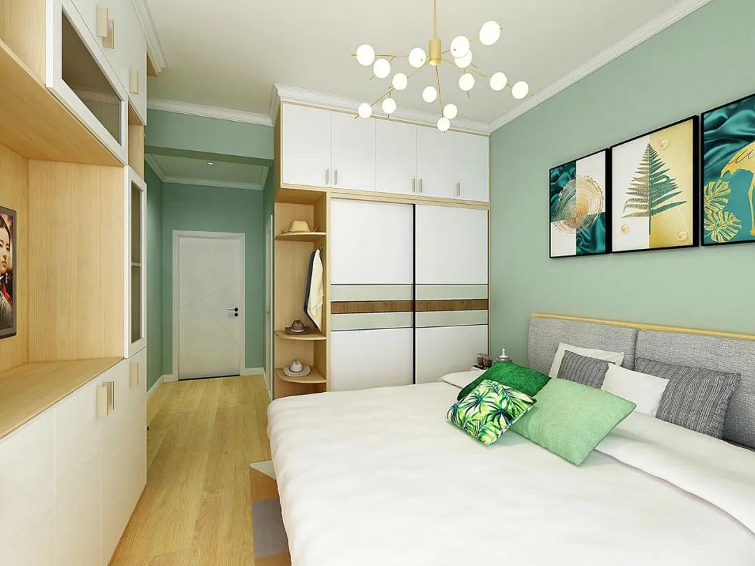 全屋以原木為主,顏色以原木搭配白色為主調(diào),配以淺綠色、米黃色為點綴,造型設計簡潔,色調(diào)對比柔和,室內(nèi)空間給人的感覺干凈明朗,體現(xiàn)寧靜的北歐風情。