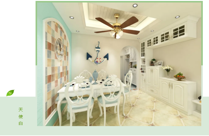 空間簡潔大方、層次分明,不同深度的和色調(diào)堆疊在一起、或是加入其他亮色調(diào)及元素,都能碰撞出不同凡響的高級感,而天使白最為適合!