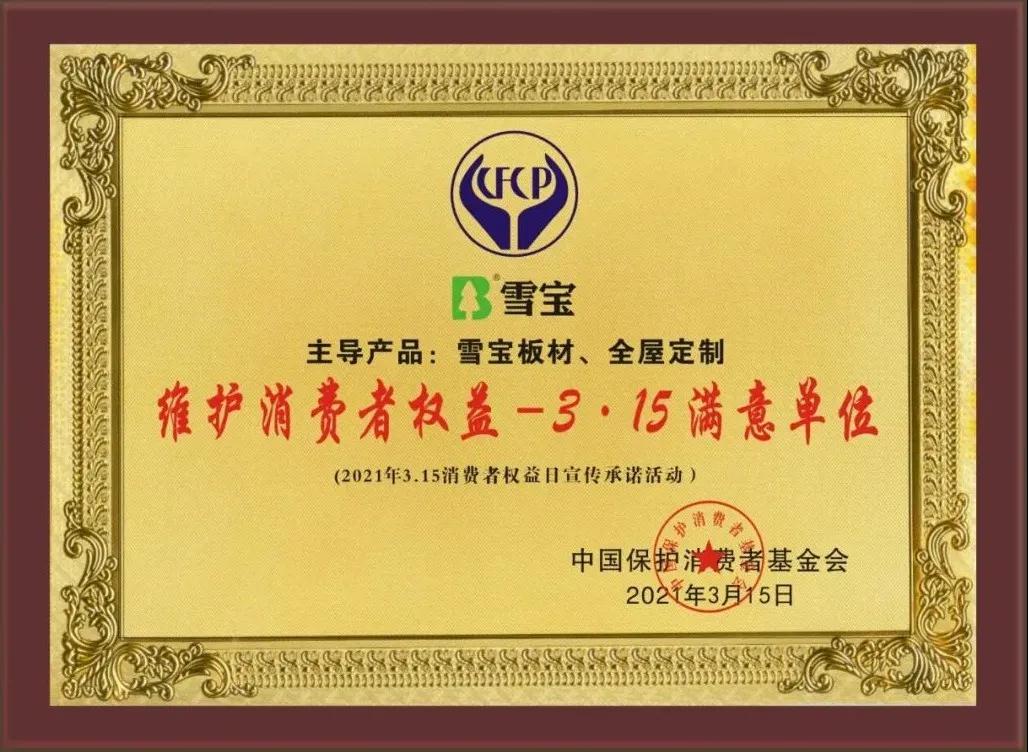 作為品牌年度大考,很多企業(yè)都避之不及,然而,也有一些品牌根本無懼3·15,他們的產(chǎn)品好評率居高不下,是真正的口碑產(chǎn)品。就在3·15消費者權益保護日這天,雪寶憑借優(yōu)質(zhì)的產(chǎn)品、滿意的服務和良好的口碑,品牌主導產(chǎn)品雪寶板材、全屋定制榮獲中國保護消費者基金會授予的【2021“維護消費者權益-3.15滿意單位”】榮譽稱號,表彰其在行業(yè)內(nèi)樹立的誠信經(jīng)營、重質(zhì)守信、優(yōu)質(zhì)服務等標桿典范!