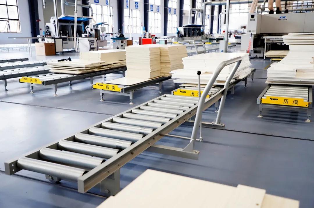 全自動化包裝分揀、包裝分揀中心,全程都不用搬運(yùn),通過“地滾”連接固定導(dǎo)軌運(yùn)輸,減少人力也避免了板材磕碰。
