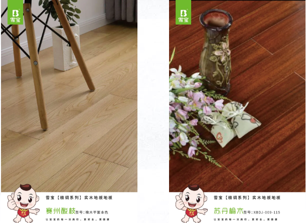 目前雪寶品牌地板產(chǎn)品系列已涵括:金剛面強(qiáng)化復(fù)合地板、新型耐地?zé)酔0級三層實木復(fù)合地板、實木地板系列。