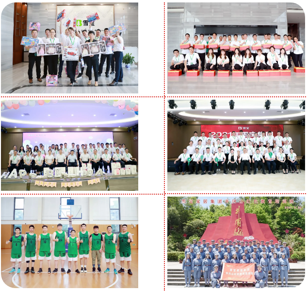 雪寶企業(yè)活動一覽,如節(jié)假日福利發(fā)放、員工生日會、培訓學習會、籃球賽、井岡山之旅等。在企業(yè)穩(wěn)健發(fā)展的過程中,雪寶人自始至終將企業(yè)文化貫徹落實并精進于日常工作生活中,并孜孜不倦持續(xù)踐行;