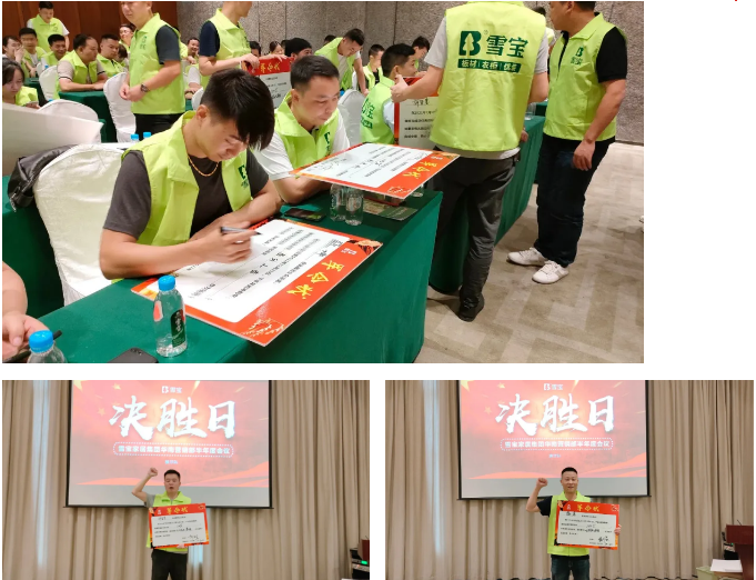 牢記目標在心,細分目標進程,付出不亞于任何人的努力以務必達成使命;顒蝇F(xiàn)場,每一位家人們上臺進行分享和總結并簽署軍令狀。