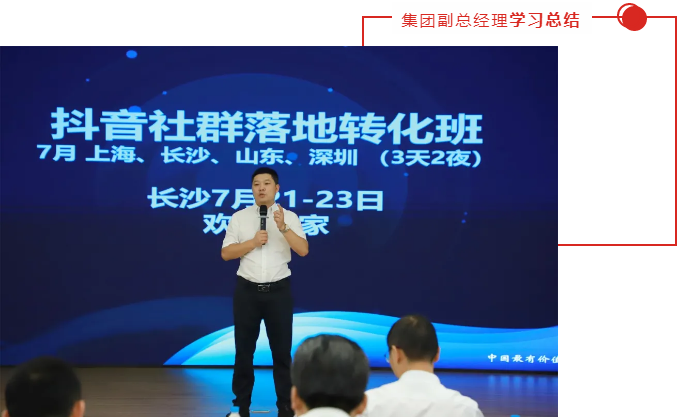 “授人以魚不如授人以漁”,通過短視頻運(yùn)營開展?fàn)I銷活動(dòng)是現(xiàn)今新媒體的主流趨勢和發(fā)展必然。在學(xué)習(xí)總結(jié)致詞中,李副總表示將加強(qiáng)企業(yè)抖音運(yùn)營團(tuán)隊(duì)建設(shè)進(jìn)度,打造集團(tuán)抖音運(yùn)營事業(yè)部,更好的服務(wù)品牌和門店終端,通過線上線下培訓(xùn)相結(jié)合,提升品牌線上推廣體制,與更多經(jīng)銷商家人、合作伙伴一起順勢而為、借勢而進(jìn)、造勢而起、乘勢而上!