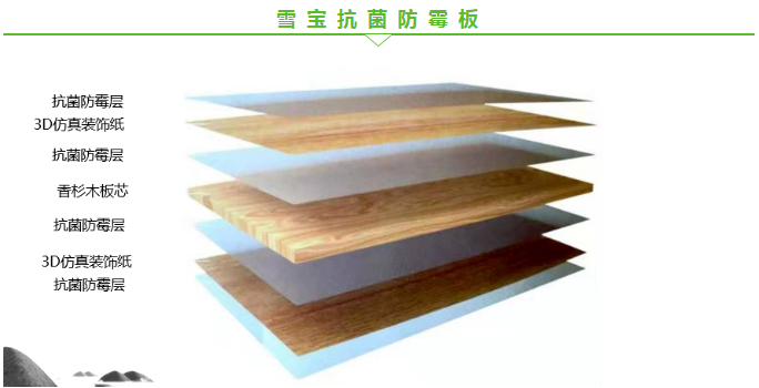 雪寶抗菌防霉板把定量的“合成抗菌劑”添加到板材中,抗菌劑俗稱“除菌衛(wèi)士”,它能夠破壞菌體細(xì)胞膜,使菌體內(nèi)容泄露,消滅大腸桿菌、金黃色葡萄球菌等有害細(xì)菌。