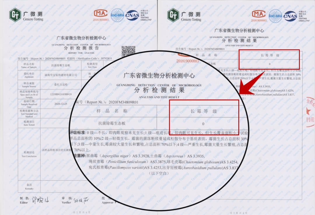 以優(yōu)質(zhì)板芯為基材,添加防霉層,可達(dá)到0級(jí)防霉效果,是防霉等級(jí)的最高等級(jí)。