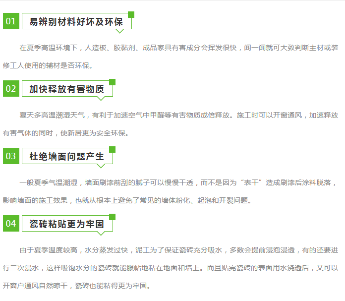 言歸正傳,其實(shí)在任何季節(jié),裝修都會(huì)面臨大大小小的問(wèn)題。只要處理好應(yīng)注意的事項(xiàng),夏季裝修也有諸多好處喲~