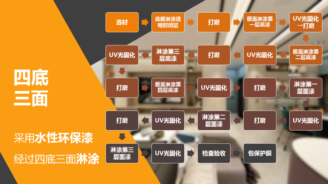 雪寶木飾面涂裝板生產(chǎn)過程經(jīng)過多道工序嚴(yán)格把控,采用水性環(huán)保漆,經(jīng)過四底三面淋涂,每一道生產(chǎn)工序都飽含匠心精神,追求細(xì)節(jié)卓越品質(zhì)。