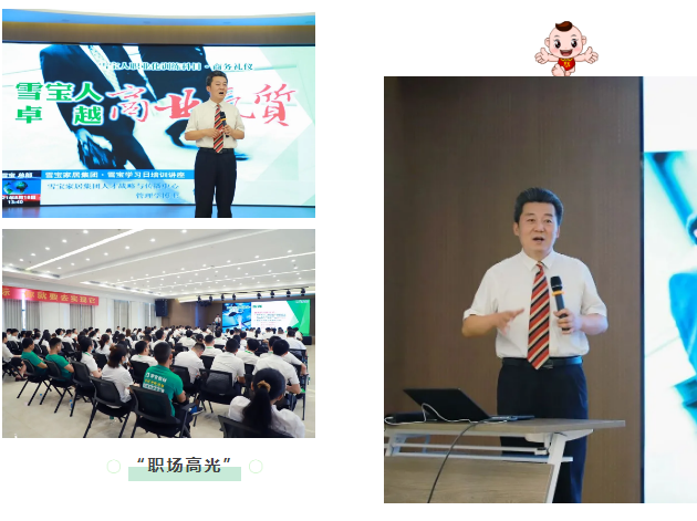 雪寶家居集團所有員工齊聚7樓會議大廳并直播連線雪寶華北營銷中心,共同開啟為期一天的精彩學(xué)習(xí),重點講解雪寶“兩升一落”、“十五字方針”戰(zhàn)略戰(zhàn)術(shù)和雪寶優(yōu)裝“六脈神劍”、盈利模式,以及工作生活中商務(wù)禮儀等課程。