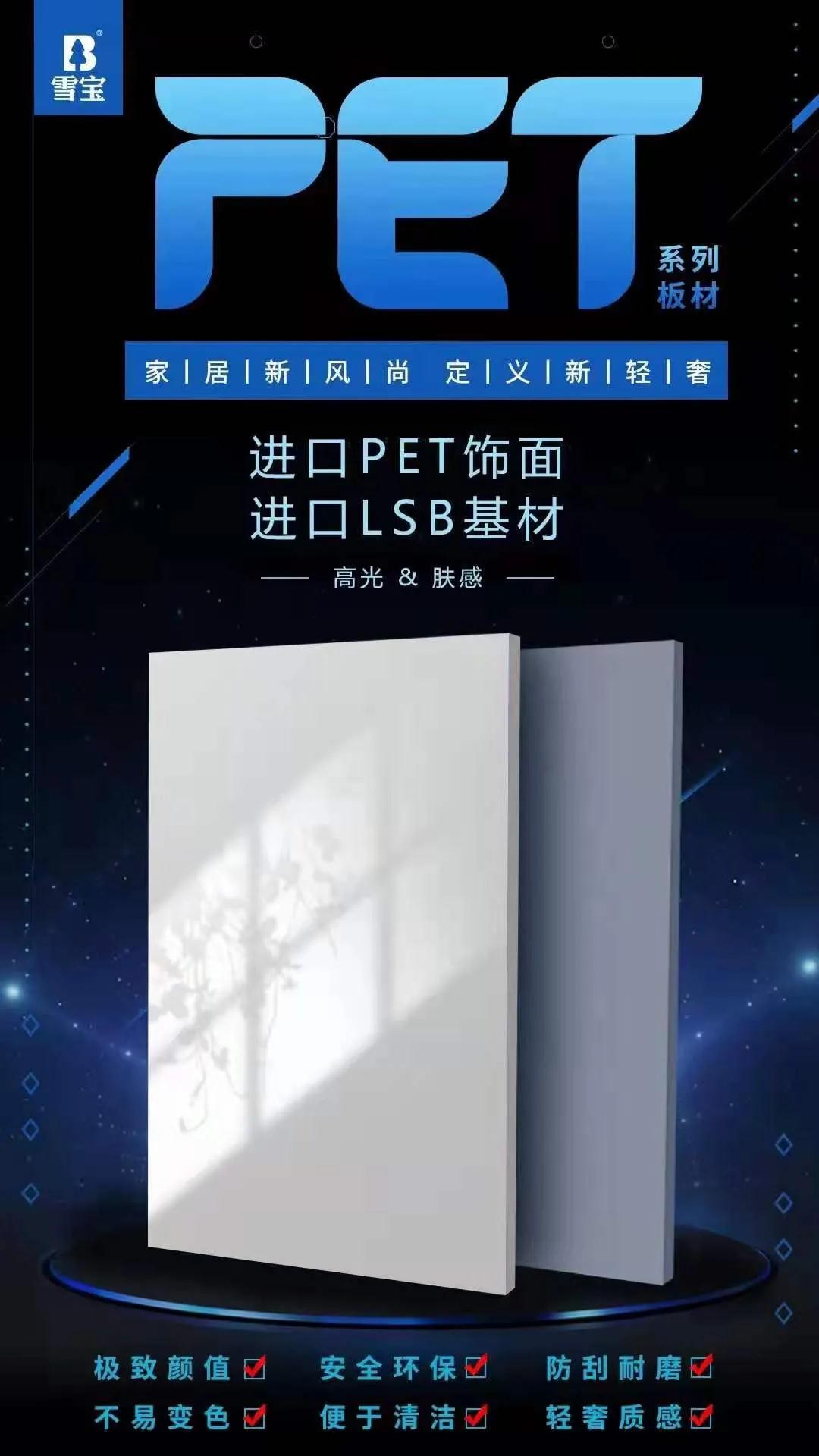 雪寶PET飾面膜的板材,表面處理有膚感/高光的效果,以達(dá)到不同光澤度和紋理效果的一種板材,可以滿足不同場(chǎng)景需求。同時(shí)因其平整度高、光澤度好、韌性強(qiáng)、不易崩邊等特點(diǎn),優(yōu)良的特性和環(huán)保性被廣泛應(yīng)用于柜體門板之上!