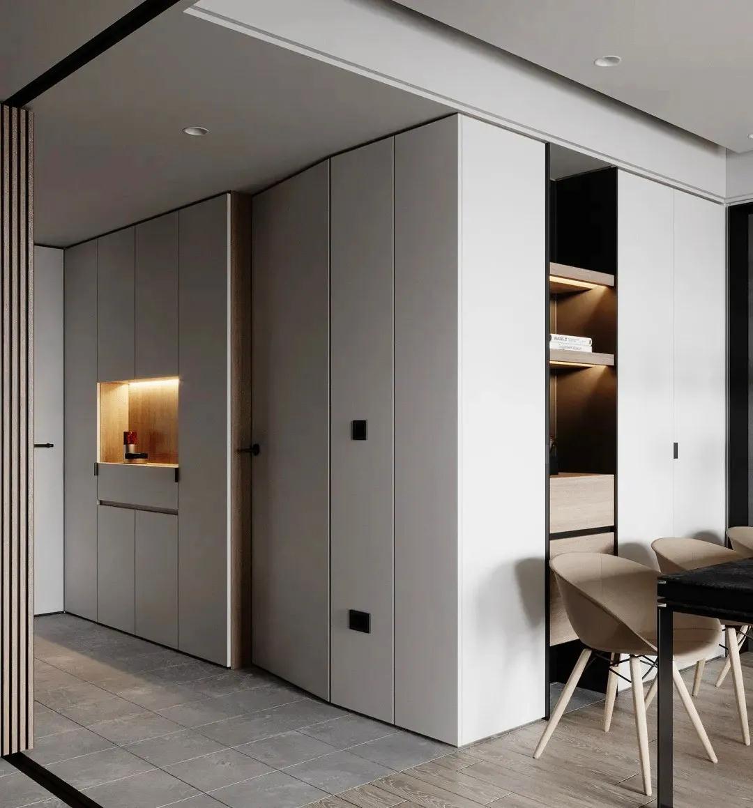 定制鞋柜,在滿足收納鞋子的功能需求上,讓居者感受的不僅僅是一個(gè)柜體,還與空間的融合,營(yíng)造一個(gè)“沉浸式”的過(guò)渡空間,將這個(gè)空間變得更有“意蘊(yùn)”。無(wú)論是功能上還是顏值上都算是一個(gè)家的門面。