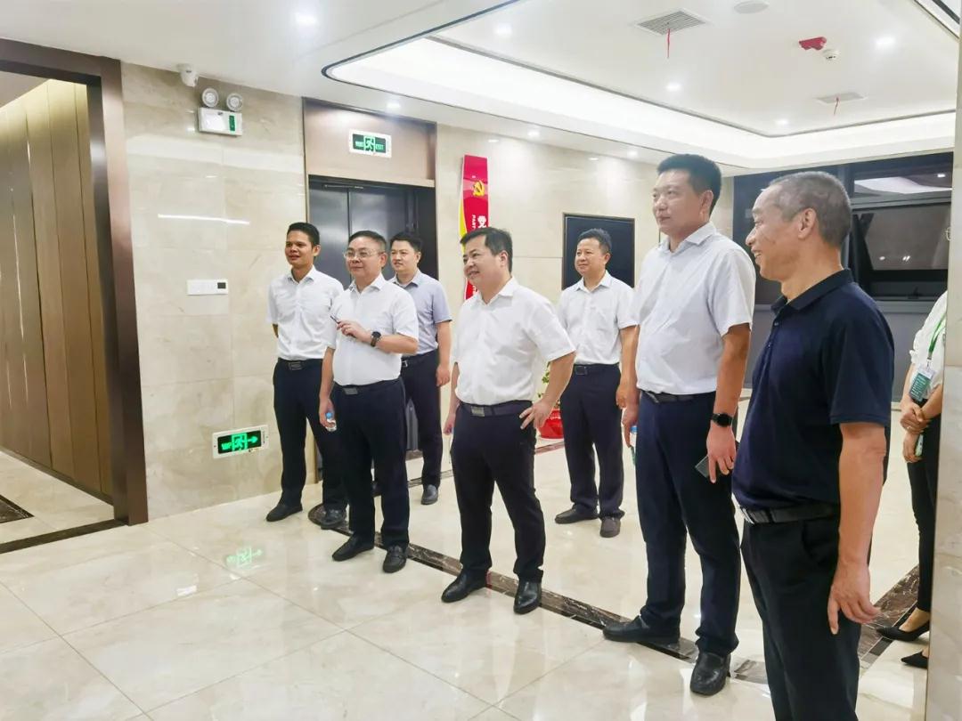 在參觀至6樓雪寶黨群服務中心,處處可見的黨建標語標識讓農(nóng)行一行領導無不稱贊,并駐足聽取李振董事長就企業(yè)為什么要做黨建以及堅定不移踐行黨建的根本原因等。