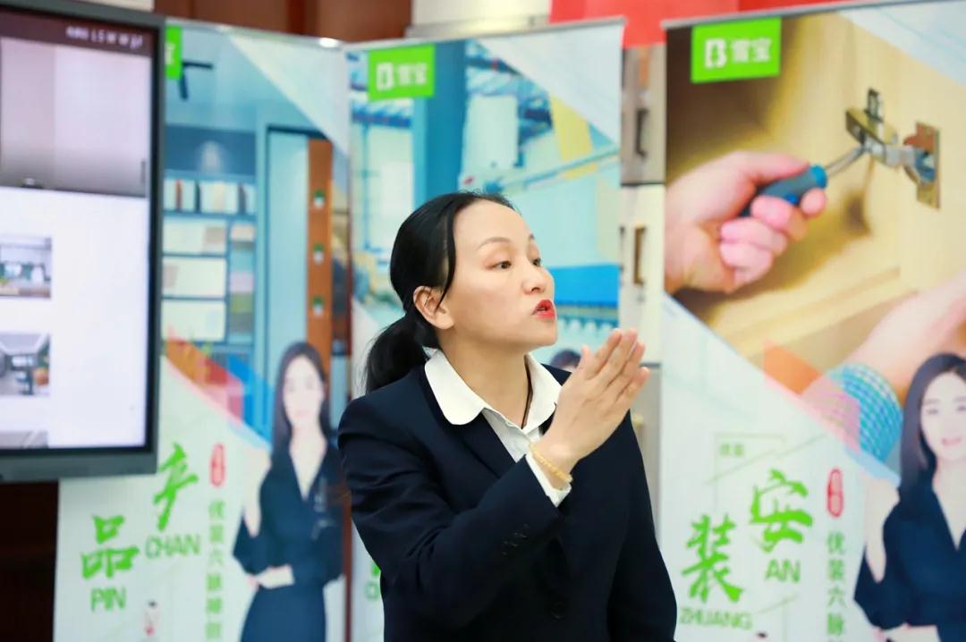 雪寶優(yōu)裝部經(jīng)理譚勤智先生講解PET/UV門板新產(chǎn)品,在產(chǎn)品端不斷推陳出新,迎合消費(fèi)者對(duì)于“環(huán)保、顏值、功能”等屬性訴求。