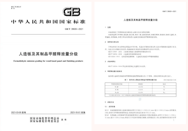由全國人造板標(biāo)準(zhǔn)化技術(shù)委員會(huì)歸口管理的GB/T 39600-2021《人造板及其制品甲醛釋放量分級(jí)》和GB/T 39598-2021《基于極限甲醛量的人造板室內(nèi)承載限量指南》正式發(fā)布。新國標(biāo)于2021年10月1日正式實(shí)施,E0級(jí)正式納入分級(jí)標(biāo)準(zhǔn),獲得國家認(rèn)可,ENF級(jí)成為全球最高環(huán)保等級(jí)。