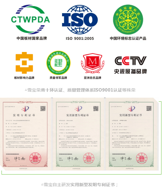 集“國字號(hào)”榮譽(yù)中國板材國家品牌、國家綠色建材品牌計(jì)劃【質(zhì)量領(lǐng)軍品牌】、中國家居建材行業(yè)領(lǐng)軍品牌、定制家居領(lǐng)軍品牌等眾多榮譽(yù)于一身的雪寶,質(zhì)量和環(huán)保屬性早已刻入品牌的基因中并傳承。