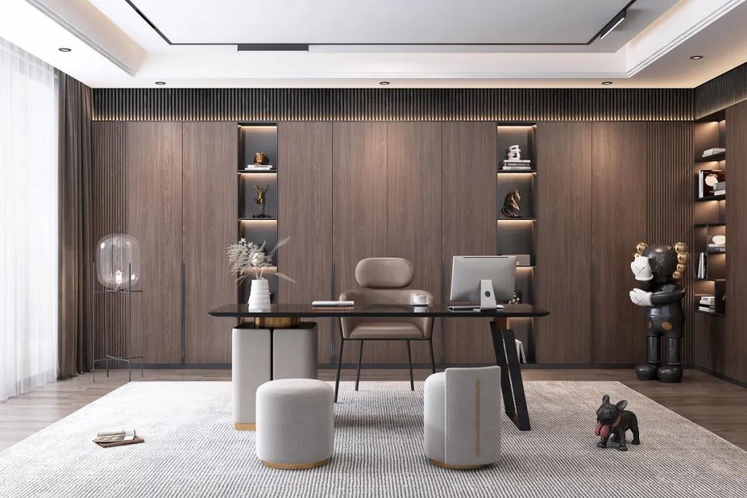 搭配建議:根據(jù)書房戶型,可以制作整體書柜和組合書柜,整體超高門書柜的大氣,組合式超高門書柜易騰出位置給書桌。