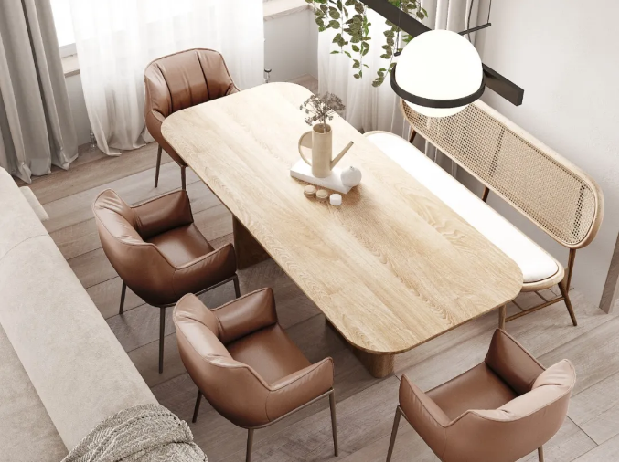 在家具材質(zhì)的選擇上,建議選用有肌理感的羊羔絨、絨布、亞麻、亞克力、原木、藤編等,自帶溫暖氣息,和諧搭配整體空間氛圍。