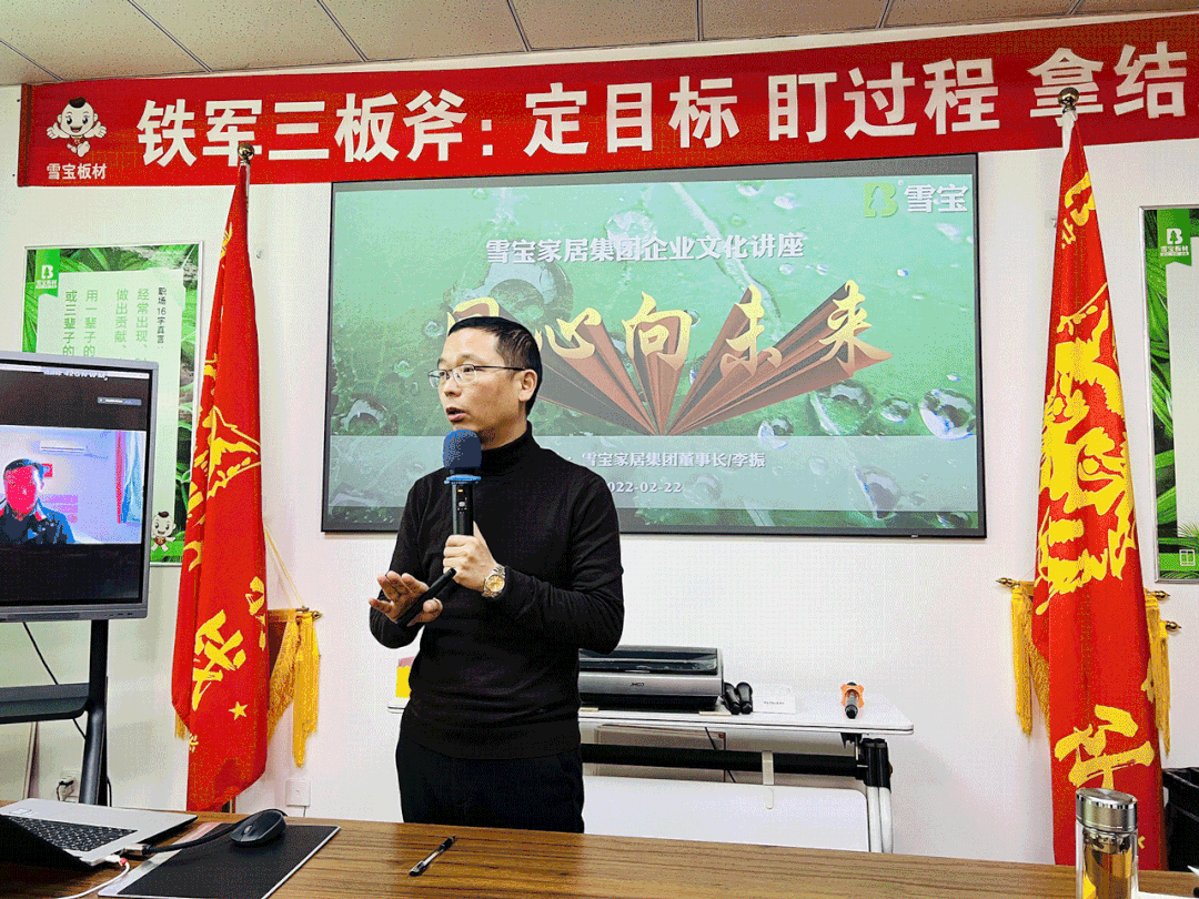 勠力同心迎開局,凝心聚力促發(fā)展!會議伊始,雪寶家居集團董事長李振先生傾情講演新年第一課《同心向未來》,通過切身經歷以及品牌創(chuàng)建、企業(yè)發(fā)展的辛酸歷程,結合企業(yè)文化內容展開講解,讓每一位家人都深刻明白雪寶企業(yè)文化中每一條內容的精髓和真諦。