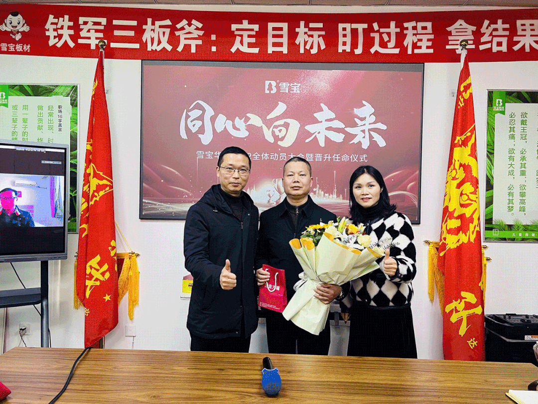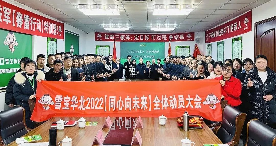 人勤春來早,奮進正當時。2月22日,雪寶家居集團華北營銷中心成功召開2022“同心向未來”全體動員大會暨晉升任命儀式。雪寶華北區(qū)的全體家人們凝聚共識,團結一心,在“踔厲奮發(fā)、開創(chuàng)新局”的2022年,上下同心,砥礪奮進,統(tǒng)一目標,力求雪寶品牌穩(wěn)健向上及再創(chuàng)發(fā)展新榮光。