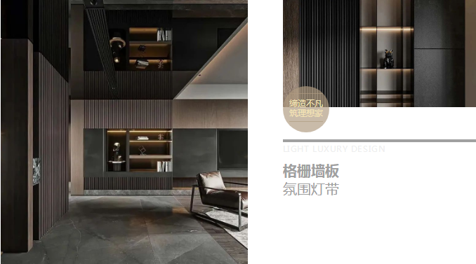 木飾面拼接格柵條,讓線條的相互交織協(xié)調(diào)著空間的動靜關系。簡約的格柵線條在講述真正的永恒經(jīng)典,脫離一切浮華和繁復,從生活的本質(zhì)出發(fā)。