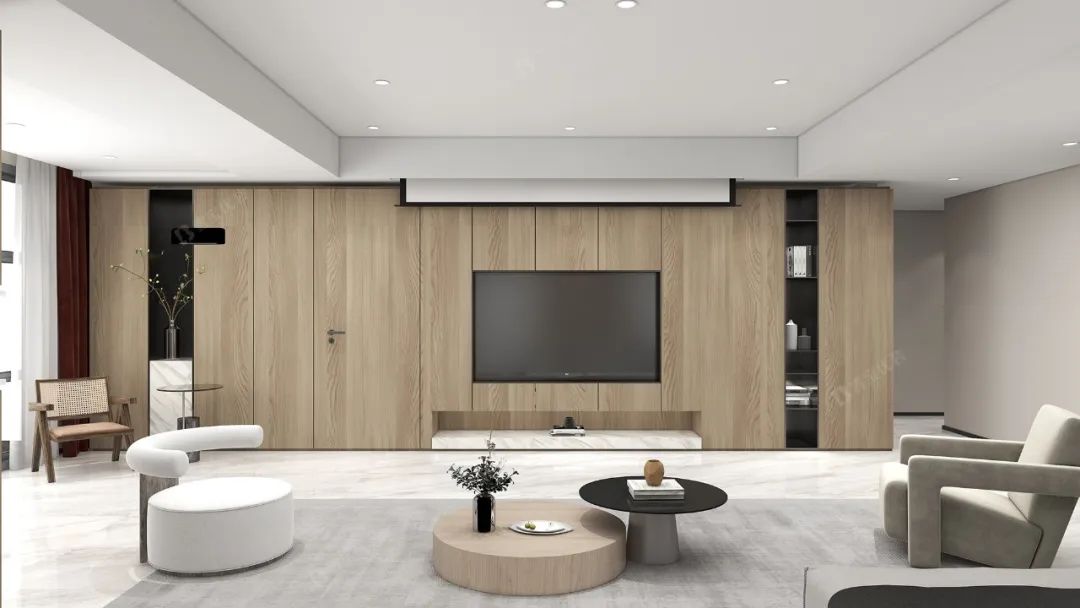 整墻電視柜,墻柜一體,外表簡約時(shí)尚,自然素雅,無拉手設(shè)計(jì)讓整個(gè)柜體更為利落清爽。