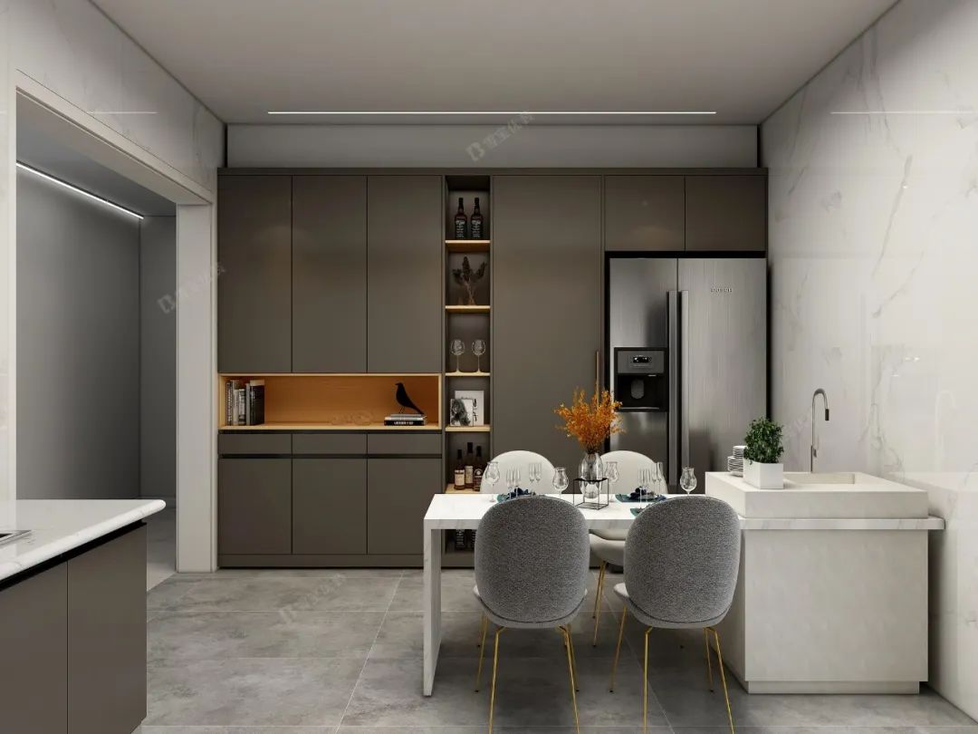 優(yōu)質(zhì)環(huán)保的材質(zhì)、柔和溫馨的燈光效果搭配簡單純粹的色彩,將廚房打造得精致美好更舒適整潔。