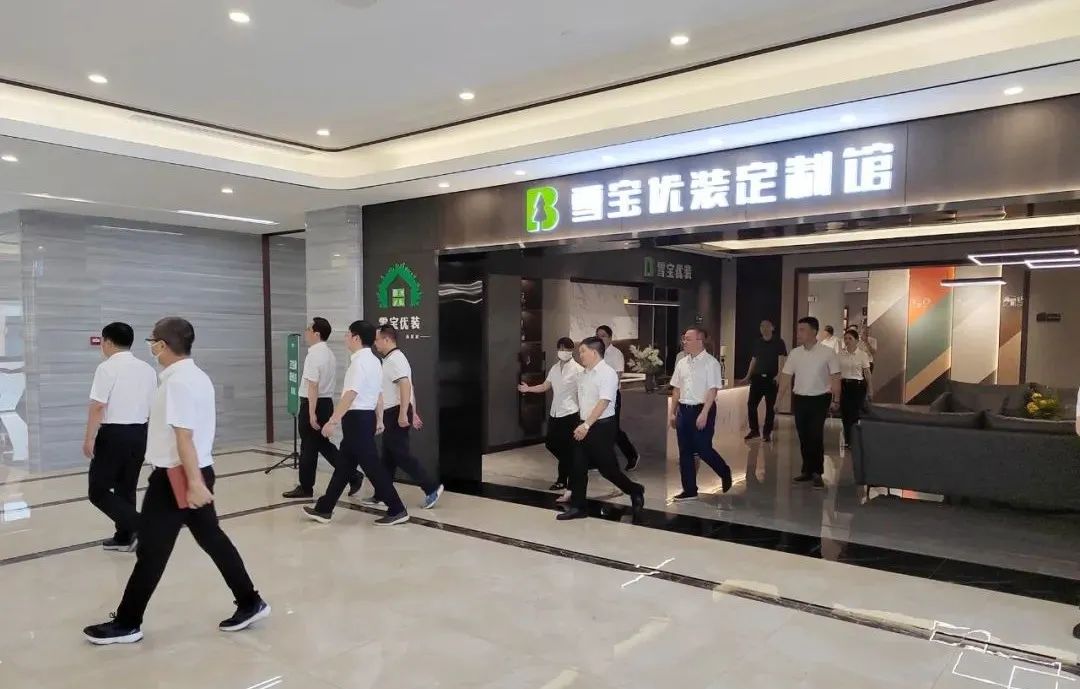 在參觀過(guò)程中,考察團(tuán)領(lǐng)導(dǎo)在雪寶優(yōu)裝定制館切身感受了雪寶兒童房健康板系列環(huán)保板材,以及嬰兒肌膚般舒適的膚感門(mén)板,綠色低碳、健康環(huán)保的森林有氧板和抗菌防霉板等功能型板材,以及強(qiáng)大實(shí)用的多功能五金件等產(chǎn)品,為參觀團(tuán)成員留下了深刻而美好的印象。