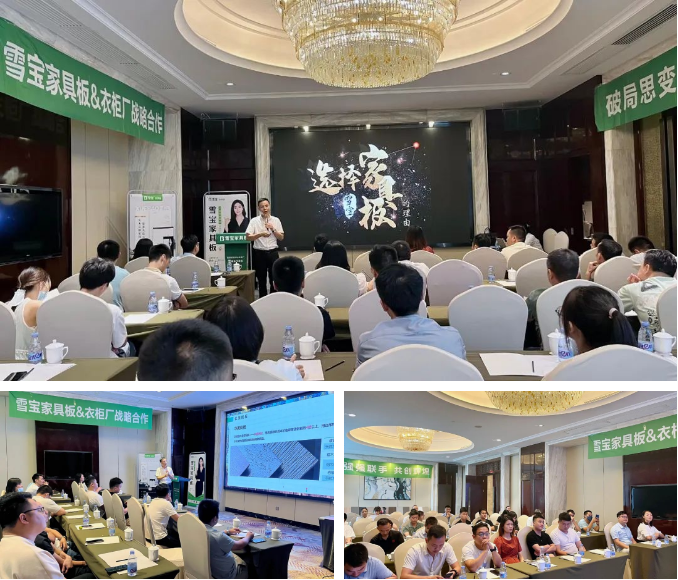 好的產(chǎn)品是成功的一半,而好的產(chǎn)品必須是解決客戶最實際的需求以及對產(chǎn)品的五星好評。雪寶家具板事業(yè)部大區(qū)經(jīng)理劉波先生現(xiàn)場介紹雪寶家具板以及選擇雪寶家具板的理由,從產(chǎn)品研發(fā)、生產(chǎn)工藝、環(huán)保標準、花色體系、營銷設(shè)計、產(chǎn)品質(zhì)檢,以及品牌強大售后服務(wù)等多維度展開系統(tǒng)、專業(yè)的介紹,幫助各位合作伙伴清晰了解雪寶家具板的核心差異化優(yōu)勢。