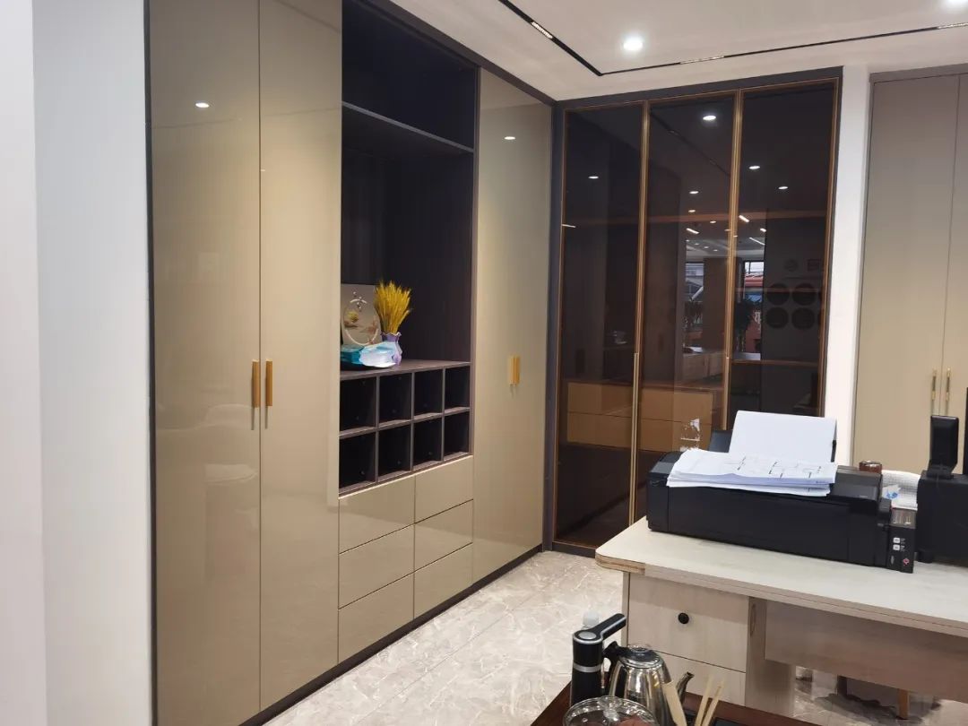 通過功能五金、燈光變化等方式,動靜結合,讓產品自己能“說話”,讓客戶跟家具溝通,增強互動和反饋?偛枯敵鰣鼍盎墓耋w解決方案,提供高效快搭的全屋定制裝修風格選擇及全房空間全景體驗,讓消費者提前享受到裝修愛家的喜悅感和幸福感。