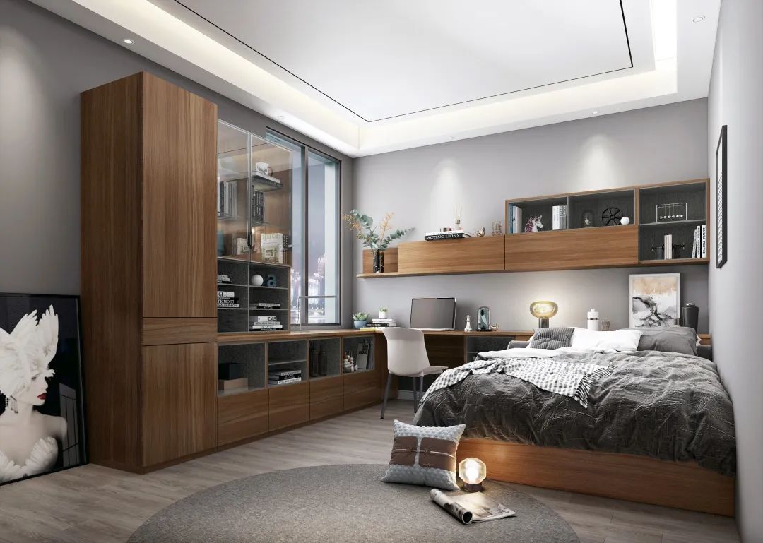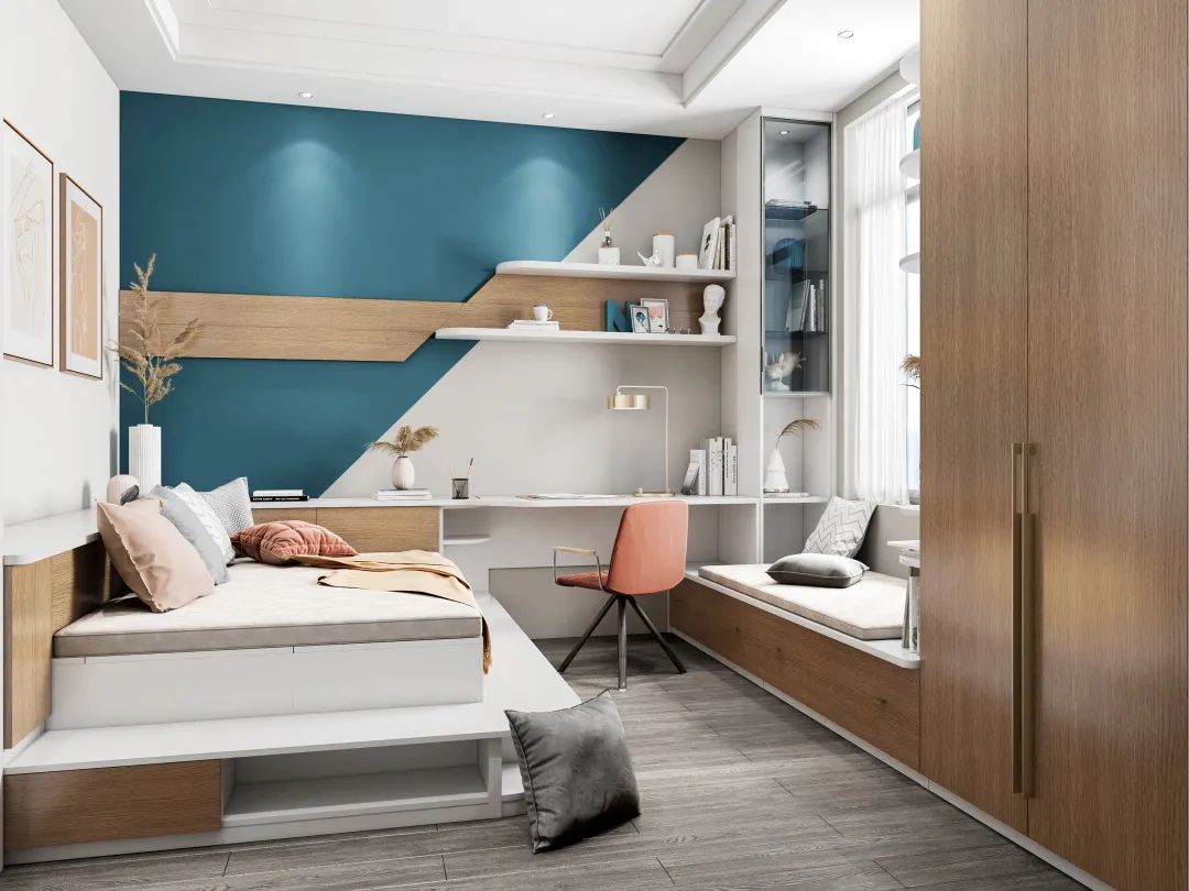 這種“功能三合一”的設(shè)計(jì)被廣泛運(yùn)用在兒童房或多功能房,它可以同時滿足休息、學(xué)習(xí)和收納需求,實(shí)用且美觀。這種“柜+桌+床”的設(shè)計(jì),不僅有舒適的工作區(qū),儲物收納+休閑會客+臨時客臥,一次滿足四大需求。