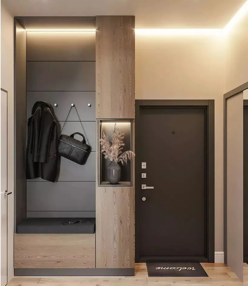 想考慮得更周全一些,可以在上柜頂部安裝燈帶,方便光線不足的時候翻找小物件更方便,連進門處的玄關(guān)燈也省了。