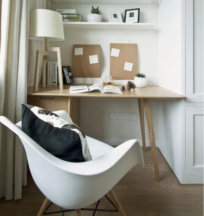 小戶型的房子,沒(méi)有獨(dú)立的書房,也可以在床頭的位置擺放一張書桌,這樣也是非常方便的,可以放床頭柜用,也可以放書桌來(lái)使用。