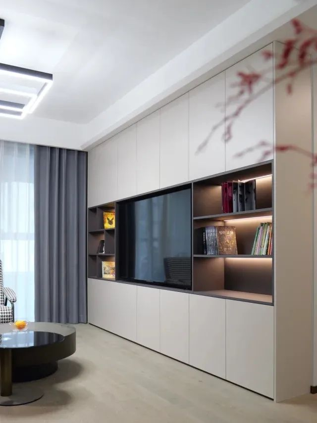 客廳電視柜幾乎都會占滿整面電視墻,若是只是用來放電視,未免有些浪費空間。電視柜和書柜的結合,能夠有限的利用空間,實現一室多用。開放式或是半閉合式柜體造型,錯落有致,讓客廳多些層次感和立體感,家居的藝術氣氛和書香味更濃!