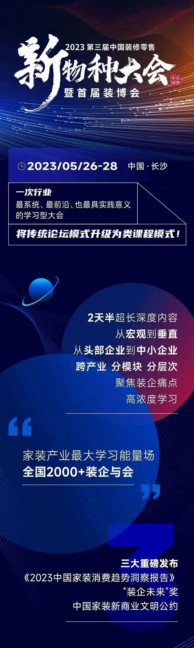 5月26-28日,湖南國(guó)際會(huì)展中心(芒果館二樓),“2023第三屆裝修零售新物種大會(huì)暨首屆裝博會(huì)”給你答案!