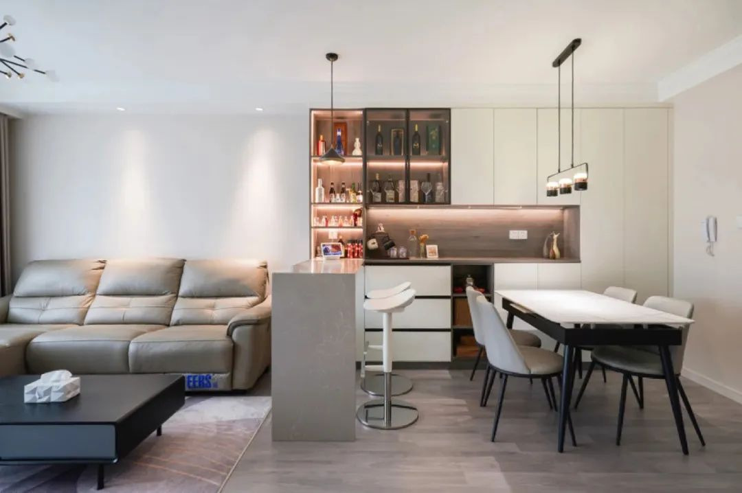 若地面空間充足,利用餐邊柜做吧臺隔斷功能區(qū),飲水區(qū)和用餐區(qū)隔開,把家居生活過成充滿生活儀式感的樣子,簡直不要太美!