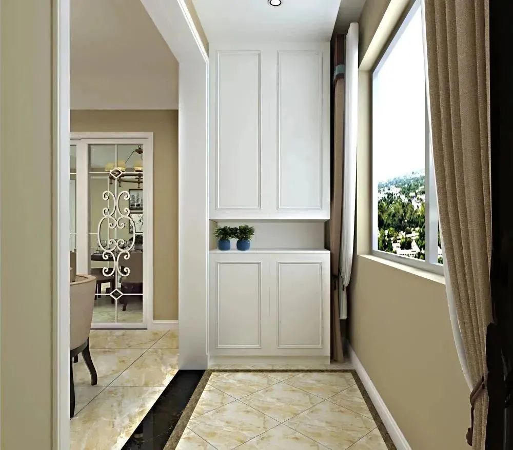 玄關(guān)空間太小,裝不下女士們的各式高跟鞋和長(zhǎng)靴該怎么辦?在陽(yáng)臺(tái)的一邊或者整個(gè)空間定制一個(gè)儲(chǔ)物柜,收納空間倍增,相當(dāng)于多了一間儲(chǔ)物室。