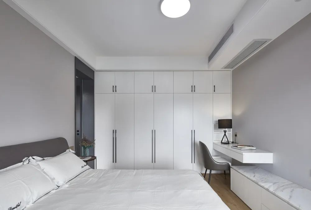 對于設(shè)計而言,空間和面的區(qū)別就是,空間的立體感是面永遠(yuǎn)給不了的。所以,即使是很小的細(xì)節(jié),也能體現(xiàn)一個空間的質(zhì)感。希望你們的臥室不僅僅是睡覺的地方,更是能夠笑著做夢的地方。