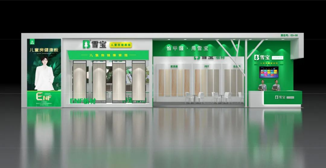 ▲雪寶展館效果圖屆時,雪寶品牌展館將為廣大蒞會來賓朋友呈現品牌風采、ENF級系列產品(生態(tài)板/家具板/實木PET柜門板等)、雪寶五金等優(yōu)異產品。依托雪寶全產業(yè)鏈打通,實現了原木材到成品柜的自研自產,層層把關保證產品品質,以及功能型板材代表“雪寶森林有氧板”、“抗菌防霉板”等產品介紹,為蒞會的裝企伙伴們全方位呈現“兒童房健康板”創(chuàng)立者以及環(huán)保標準首倡者的雪寶風采。