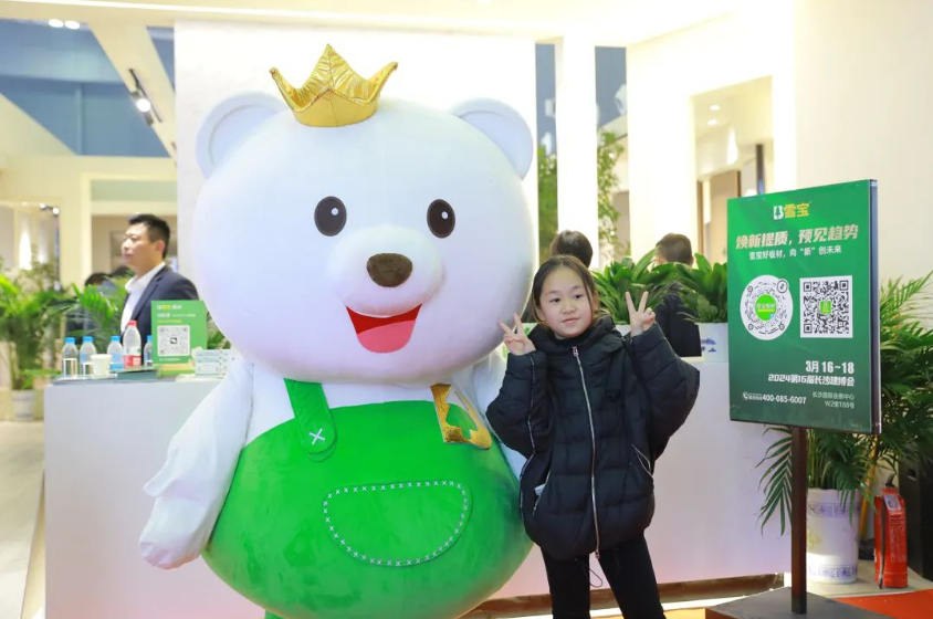 在展會現(xiàn)場,雪寶全新的品牌VI以及超級IP形象通過本屆長沙建博會首次與廣大消費者見面,IP人偶服裝扮互動和精致的IP手辦免費相贈,也引來眾多參展人士的打卡和領取,大家紛紛與雪寶超級IP形象合影留念并點贊。