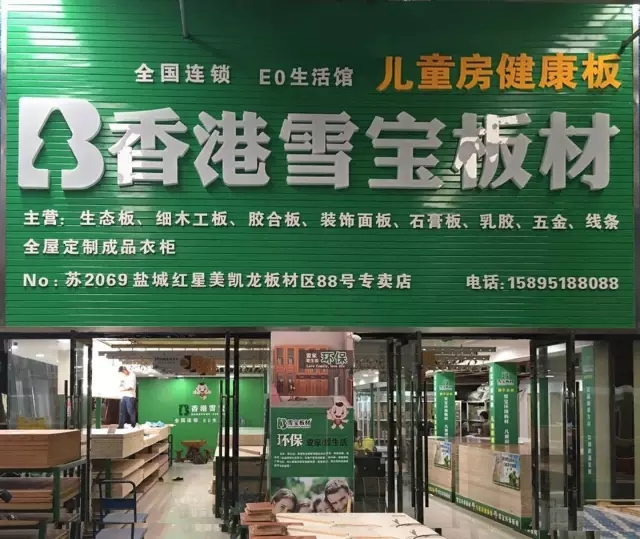雪寶板材鹽城旗艦店地址位于江蘇省鹽城市鹽都紅星美凱龍裝飾城板材區(qū)88號,熱誠歡迎您的光臨。