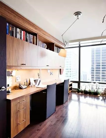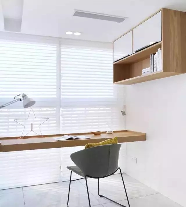 陽臺(tái)改造成書房已經(jīng)成為當(dāng)下的流行風(fēng)格,一個(gè)定制的書桌柜讓陽臺(tái)變出了一個(gè)小書房,吊柜還為收納擴(kuò)容了。