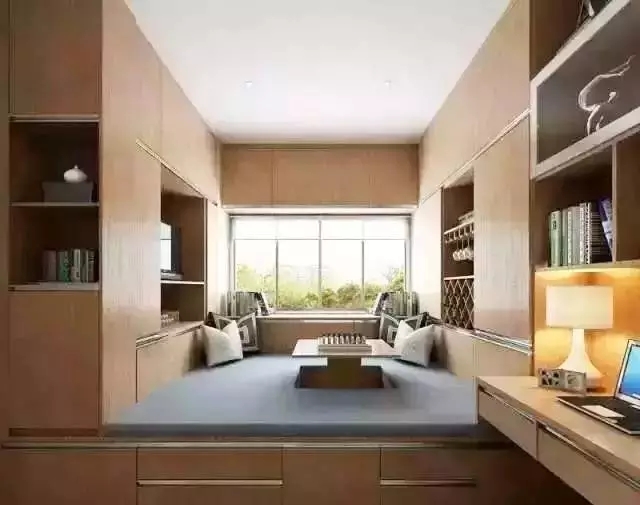 陽臺(tái)榻榻米讓封閉式陽臺(tái)不再沉默,而榻榻米的吊柜設(shè)計(jì)讓墻壁空間盡可能的利用起來,帶來更多的收納可能。