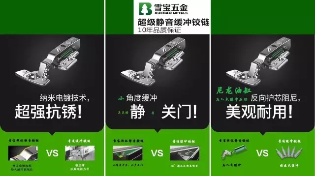 五金配件雖小,但與家具的良好使用緊密相關(guān),五金配件的質(zhì)量尤為重要。板式家具多由五金件連接,挑選板式家具時(shí),注意開關(guān)柜門,開啟抽屜有無噪音、是否平穩(wěn)、輕松、順滑。同時(shí),五金件的表面是否有剝落、腐蝕、毛刺的現(xiàn)象。香港雪寶五金十年品質(zhì)保證、現(xiàn)代電鍍工藝;進(jìn)口原裝配件、產(chǎn)品結(jié)構(gòu)科學(xué);款式新穎獨(dú)特、外觀設(shè)計(jì)專利;標(biāo)準(zhǔn)尺寸參數(shù)、系列產(chǎn)品齊全。